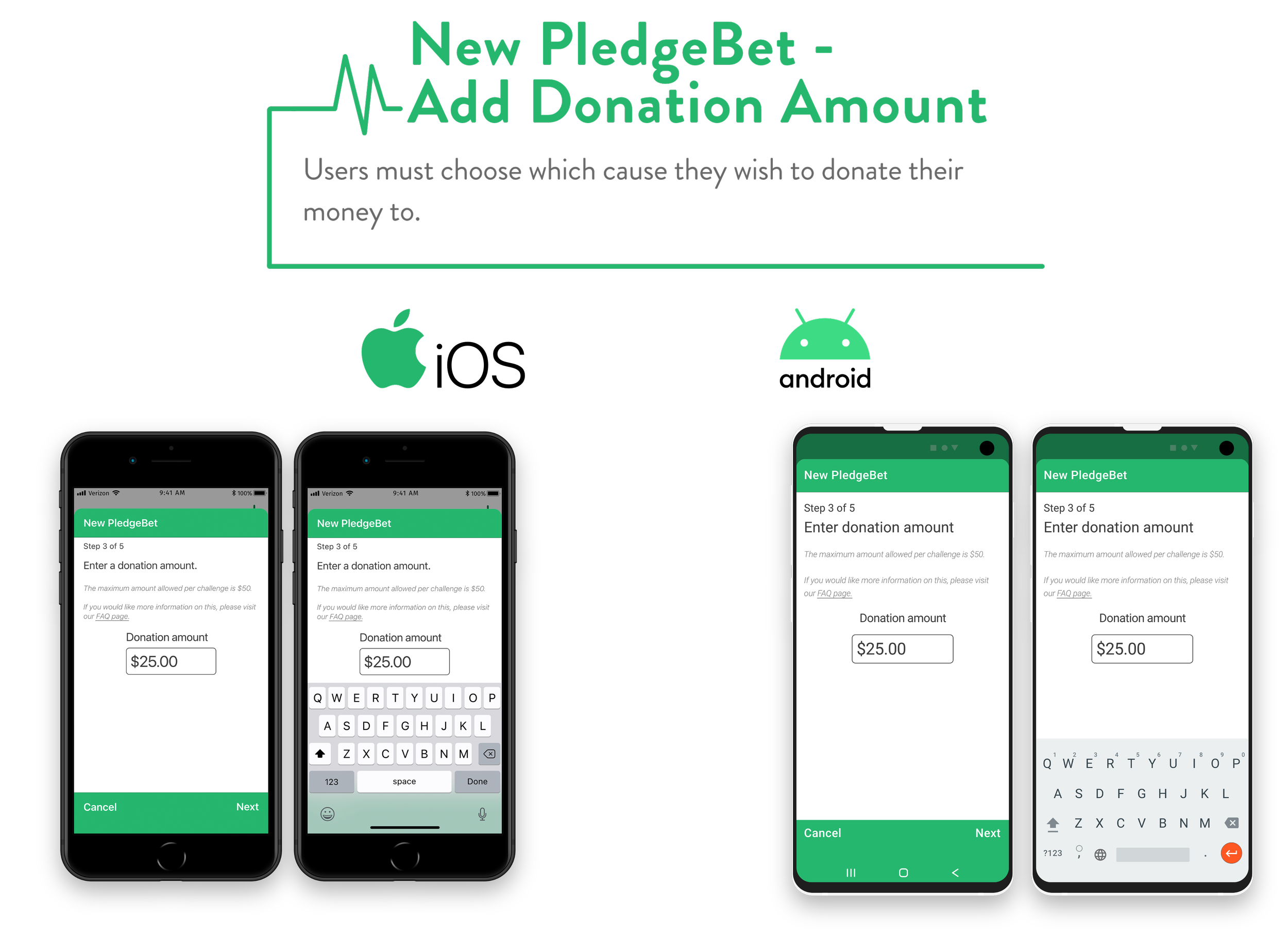Users can feel motivated to reach their end goal while also feeling optimistic in the event that they do not finish their challenge. A user’s charity of choice will still get the money that was donated to them and users will not have to root for the failure of others.